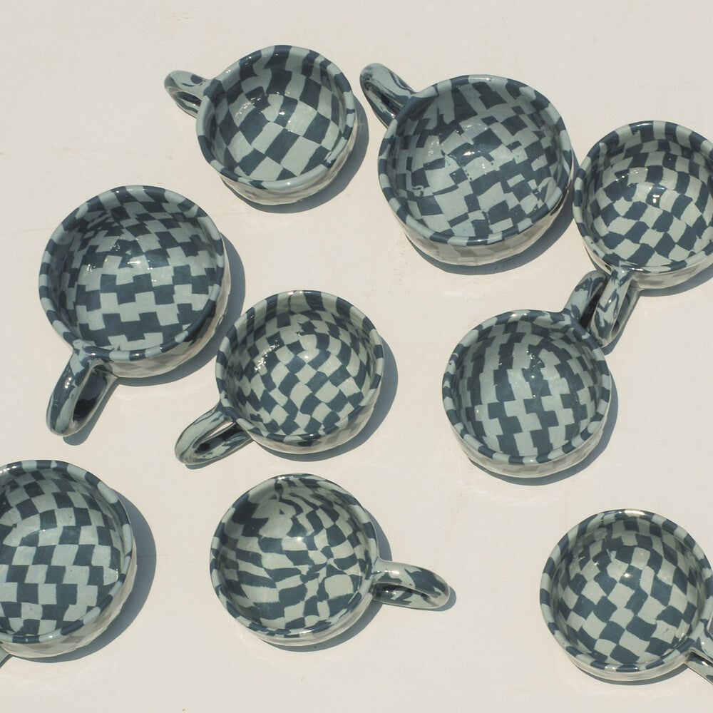 Latte Mug Blue Check 260ml